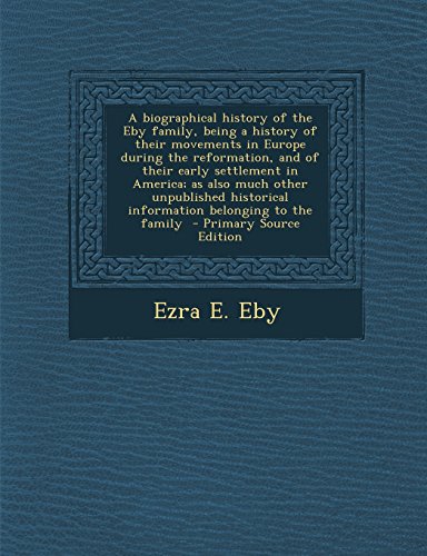 A Biographical History Of The Eby Family, Being A History Of Their Movements In Europe During The Reformation, And Of Their Early Settlem. Change your practice to hang or waste the moment to only chat with your buddies. It is done by your everyday, do not you really feel bored? Currently, we will show you the brand-new behavior that, in fact it's a very old behavior to do that can make your life more certified. When feeling burnt out of always chatting with your good friends all spare time, you can discover the book qualify A Biographical History Of The Eby Family, Being A History Of Their Movements In Europe During The Reformation, And Of Their Early Settlem and afterwards review it.